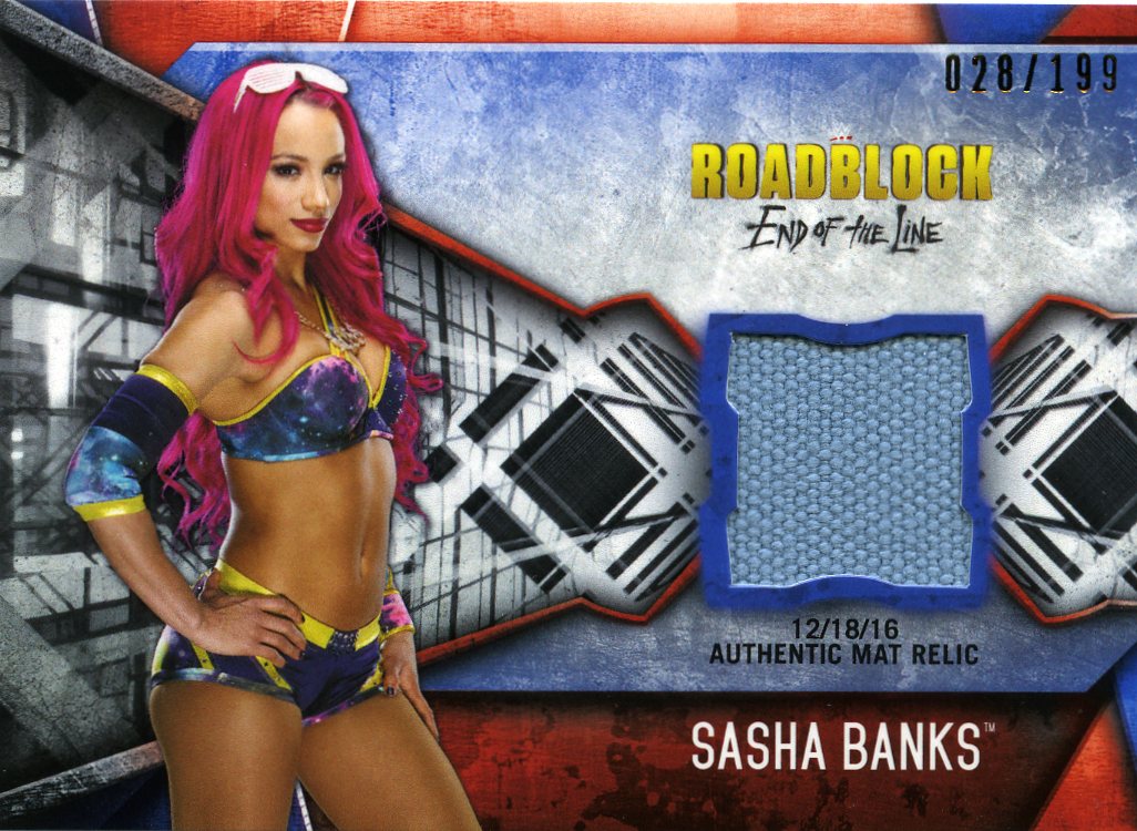2017 Topps WWE Sasha Banks Authentic Mat Relic #028/199 Roadblock End of the Line Event-Used...